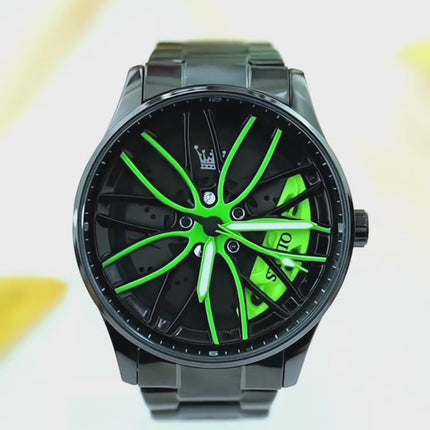 Reloj Analogo Olevs Caratula Giratoria Negro Verde